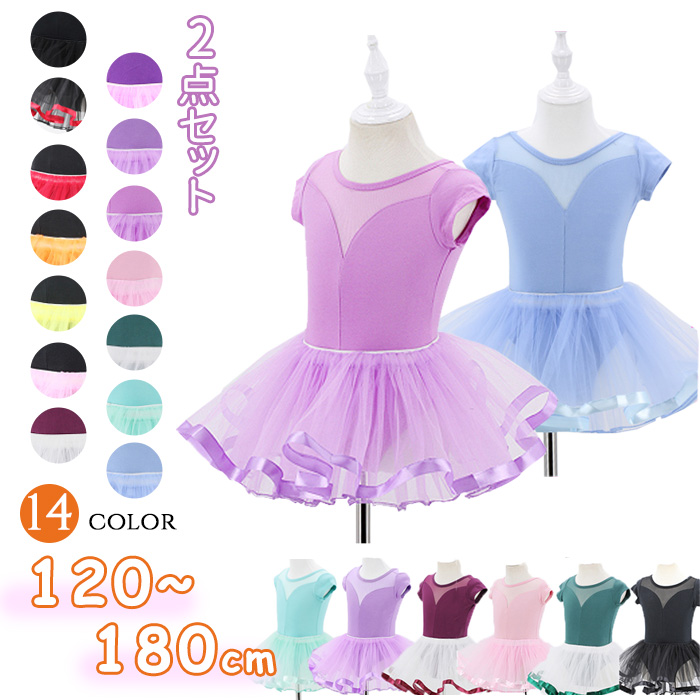 バレエ レオタード 子供 スカート付き 14カラー 子供レオタード 衣装 かわいい ダンス 股下スナップ 女の子 女児 ジュニア 練習着 演出用 発表会 レッスン着 スカート付き 体操 半袖 袖あり