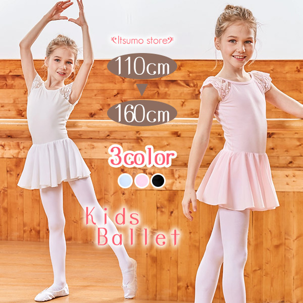 バレエ レオタード 子供 スカート付き レース 黒 子供 バレエ レオタード 子供 半袖 ジュニア コットン 綿 ストレッチ 伸縮 練習 レッスン着 新体操 水色 ブラック 黒 ピンク 演出用 100