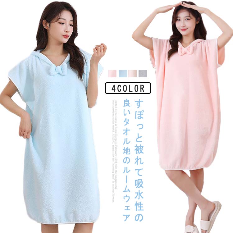 レディース ルームウェア 着るバスタオル サイズ バスタオル プール ラップタオル 吸水 タオル 薄手 湯上がりワンピース 海 ジム 旅行 大判 可愛い リボン 無地 大人 マイクロファイバー 大きい