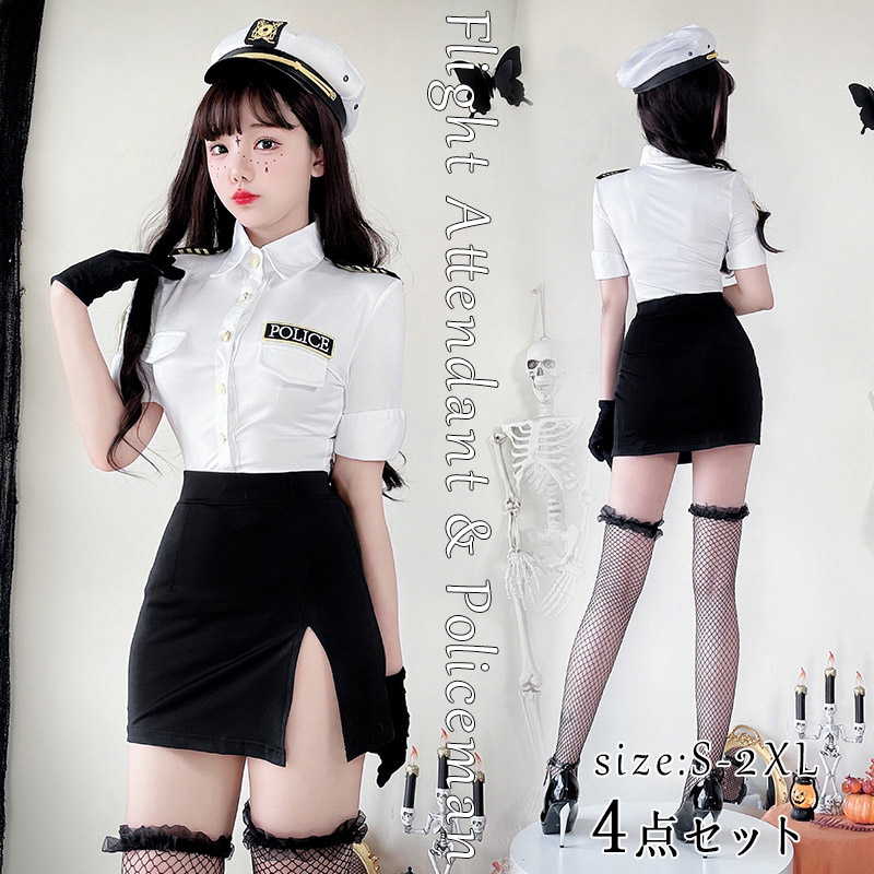 ハロウィン コスプレ 警察 警官 コスチューム コスプレ 衣装 大人 4点セット コスチューム レディース 演出服 二次会 余興 忘年会 文化祭 学園祭