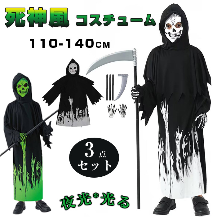 ハロウィンやお誕生日、お遊戯の衣装、テーマパークのお出かけにもオススメ ハロウィン衣装 死神 110-140
