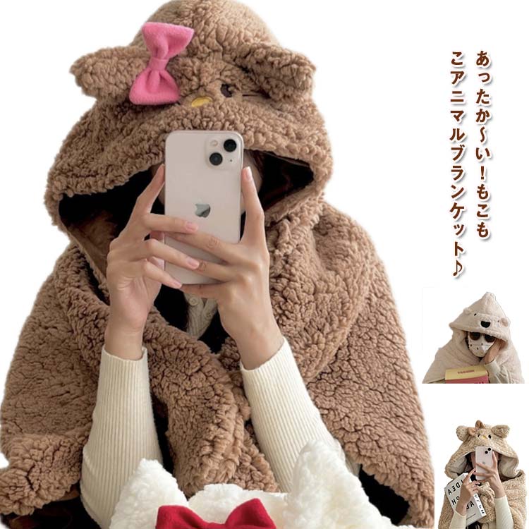 ブランケット ひざ掛け 膝掛け レディース キッズ 子供 秋 冬 大判 フード ポンチョ アニマルインテリア 寝具 収納 寝具 毛布 ブランケット