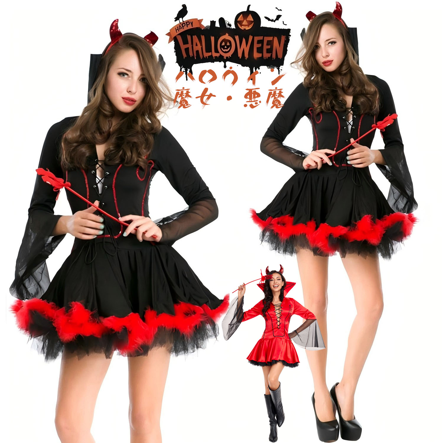 ハロウィン 衣装 魔女 巫女 コスプレ 衣装 大人 悪魔 ハロウィン 仮装 3点セット ワンピース 魔法使い 黒 ワンピース 衣装 コスチューム 女性用 セクシー ハロウィーン仮装