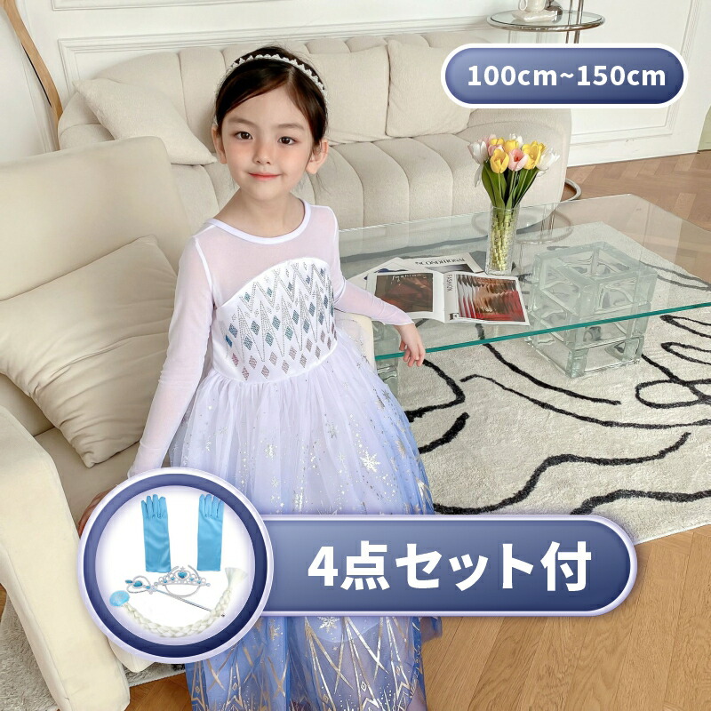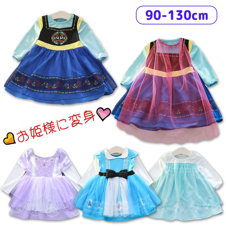プリンセス ドレス 子供 ワンピース 女の子 アナ エルサ 雪の女王 スノーホワイト 白雪 お姫様 アリス ソフィア ハロウィン 衣装 キッズ ハロ なりきり 長袖 仮装 誕生日 プレゼント ギフト
