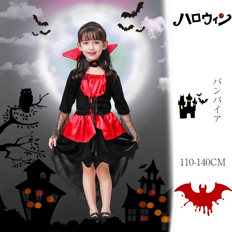 ハロウィン 女の子 魔女 バンパイア 悪魔 クイーン 吸血鬼 コスプレ コスチューム 衣装 仮装 キッズ 子供用 変装 120 130 140 150