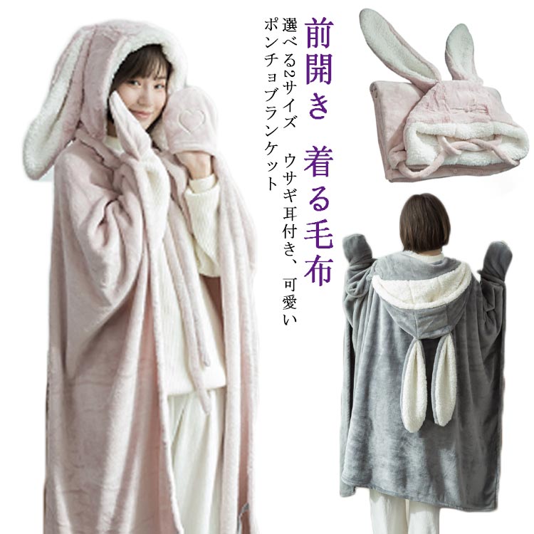 ラビットポンチョ ひざ掛け ブランケット 大判 おしゃれ ボア ルームウェア 部屋着 可愛い モコモコ 外出 着る毛布