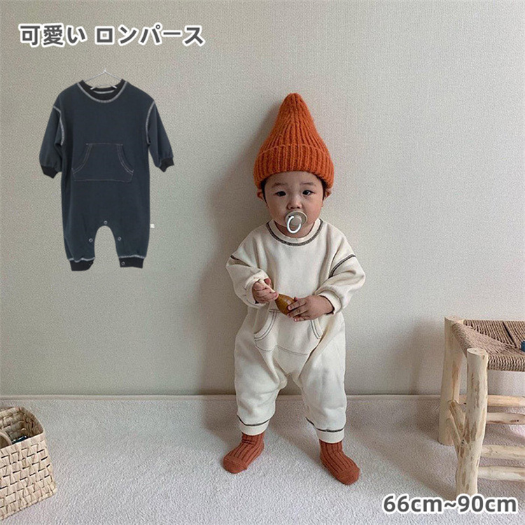 かわいい ロンパース 秋 春 ロンパース ベビー パーカー スウェット カバーオール 子供服 ベビー服 ギフト 孫 出産祝い プレゼント 2色 ブラック オフベージュ