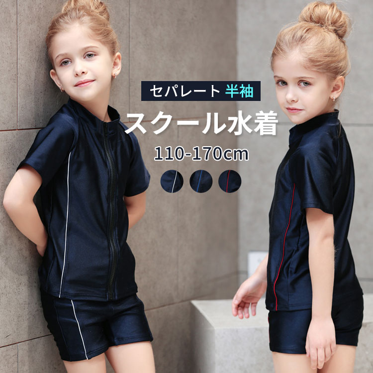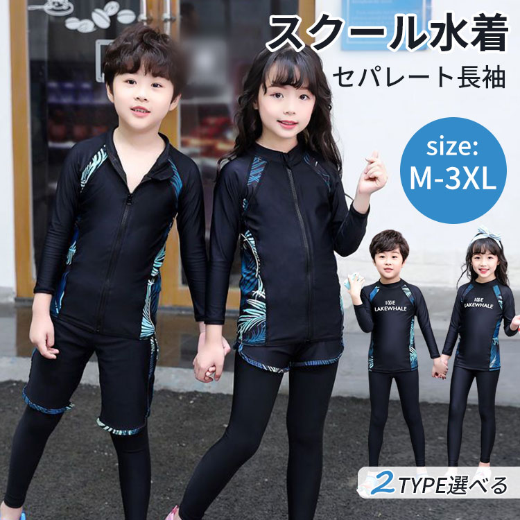 スクール水着 女の子 女子 セパレート型 キッズ ジュニア 水着 無地 長袖 スイムウェア スイムウエア ガールズ水着 スイミング 女児 スポーツ ネイビー 紺 ブラック プール 水遊び 子供用 幼稚