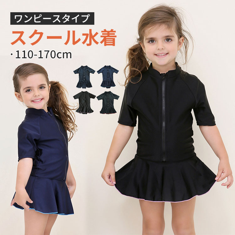 スクール水着 女の子 女子 ワンピース型 キッズ ジュニア 水着 無地 半袖 スイムウェア スイムウエア ガールズ水着 スイミング 女児 スポーツ ネイビー 紺 ブラック プール 水遊び 子供用 幼稚