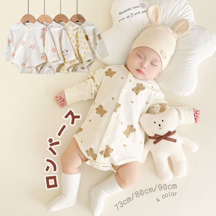 在庫を一掃する ロンパース ベビー くまさん 熊 はな 花 みかん 羊 ひつじ 子供 赤ちゃん 長袖 新生児 カバーオール 前開き ベビー服 春夏 秋 冬 かわいい 可愛い おしゃれ 男の子 女の子