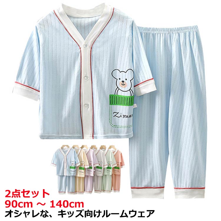 キッズ パジャマ 前開き 夏 男の子 女の子 ルームウェア 120 薄手 ボタン 春 秋 夏 子供 部屋着 前開き 寝巻 ルームウエア 7分丈 キッズパジャマ 子供パジャマ 上下セット