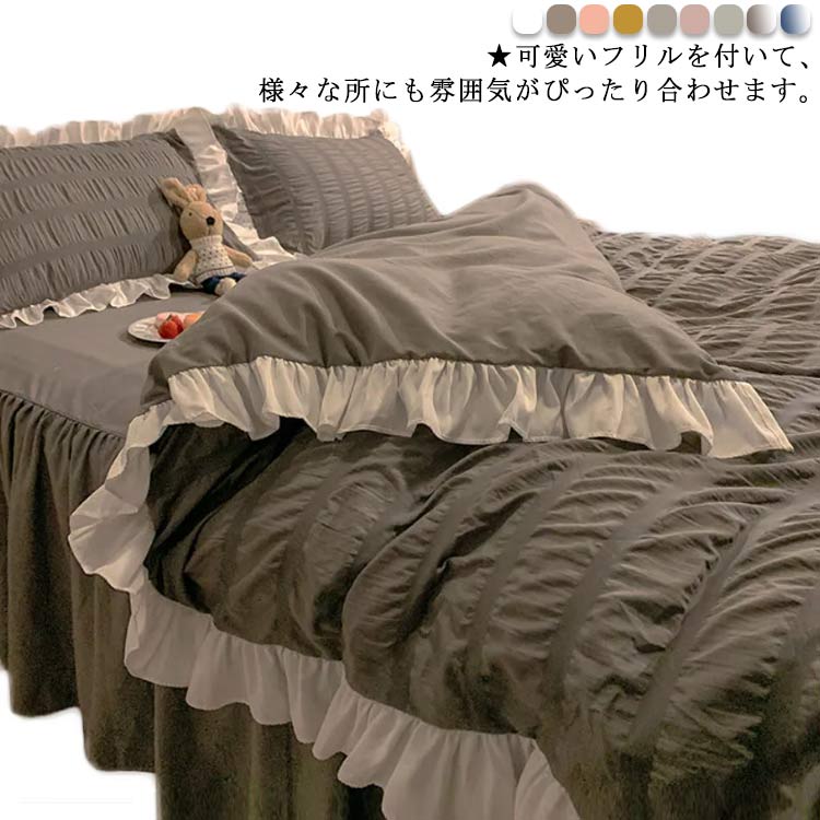 上品な大人可愛いフリル付き布団カバーセット 姫系 ダブル シングル セミダブル フリル 柔らか 優しい 肌触り 寝具 掛布団 まくら 丸洗い 吸汗
