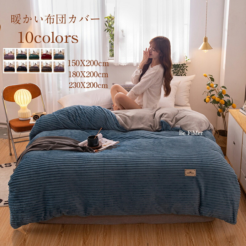 掛け布団カバー ふわふわ 柔らかい 北欧 冬用 フリース マイクロファイバー 無地 ボーダー 光沢感 おしゃれ ダブル クイーン キング 暖かい 厚手 毛布にも使える 寝具 ふとんカバー 表裏バイカラ