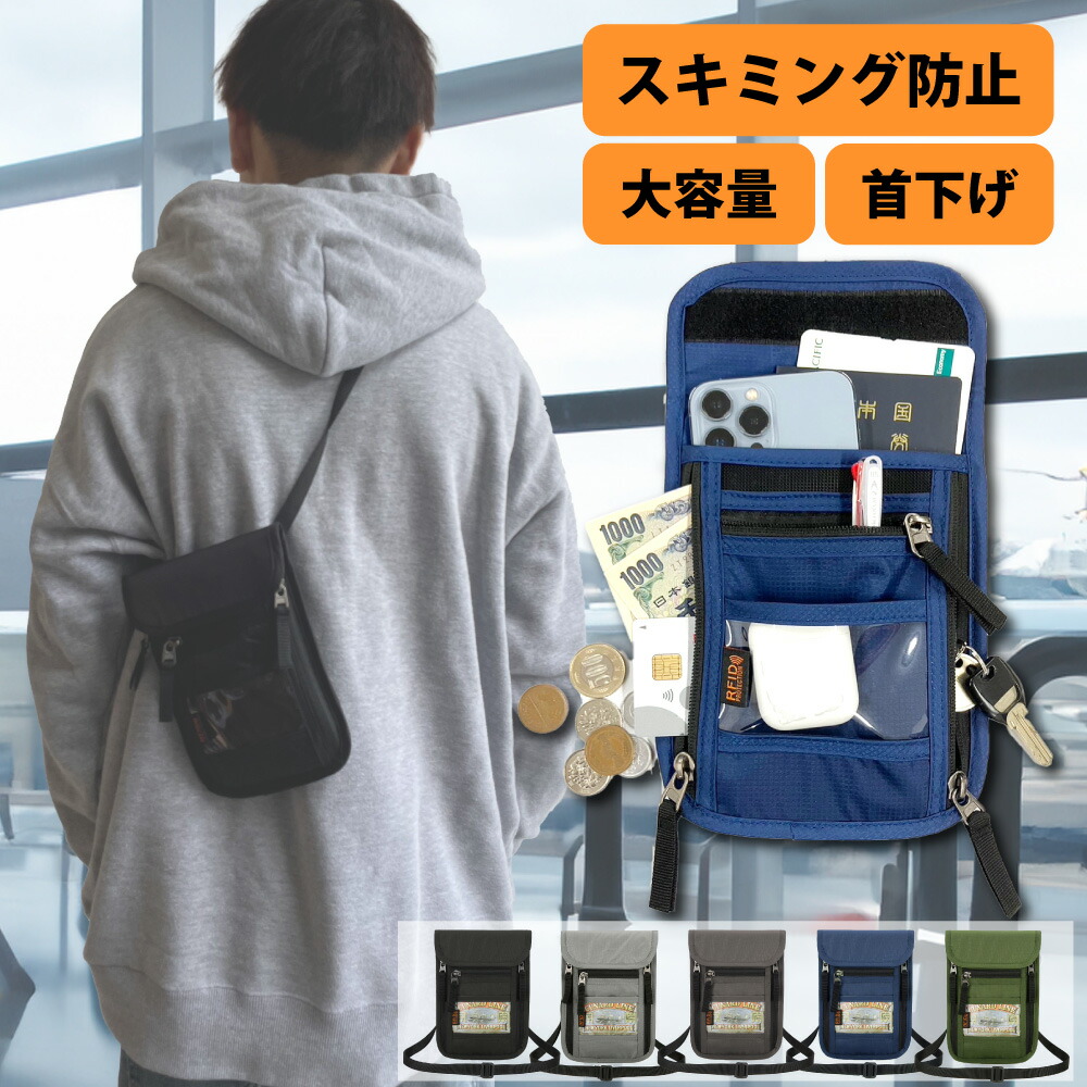 パスポートケース 首下げ セキュリティポーチ スキミング防止 海外旅行 便利グッズ パスポートカバー チケットホルダー バッグ 防犯 ポーチ パスポート ケース