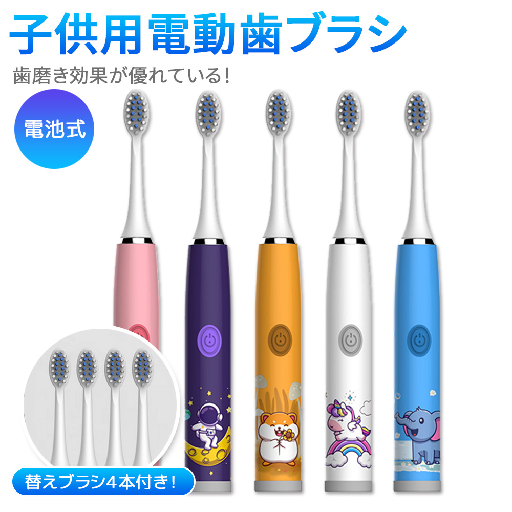 子供用電動歯ブラシ 電動はぶらし 替えブラシ4本付き 歯みがき はみがき ブラッシング 新生活 白 ホワイト グリーン