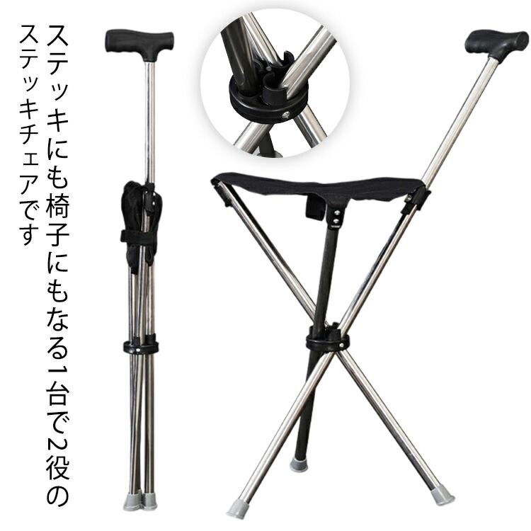 テッキチェア 椅子になる杖 杖 椅子 杖型椅子 三脚 散歩 ハイキング 旅行 行列 運動会 シニア ステッキ チェアー 歩行補助杖 軽量 コンパクト 祖父母 プレゼント