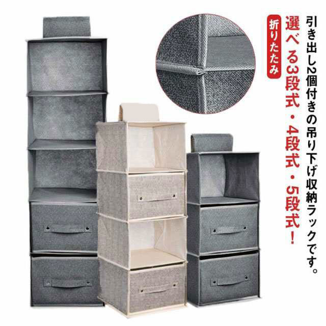 吊り下げ収納 ラック クローゼット 衣類収納 3段 4段 5段 ラック 靴下 カバン 下着 ズボン タオル 帽子 整理整頓 収納ハンガー クローゼット収納 吊り下げ 収納