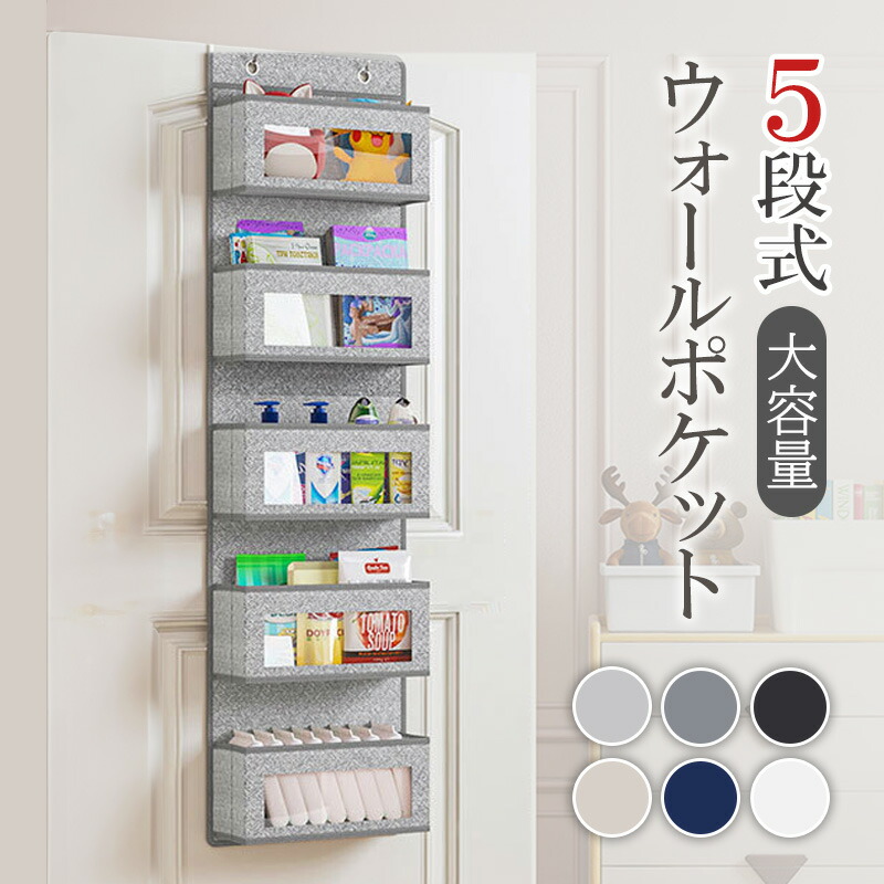 ウォールポケット 収納 吊り下げ ドア掛け 大容量 縦 おしゃれ ハンガー 壁掛け収納 ポケット 北欧 不織布 マチ付き ブラック 雑貨 小物入れ 布 透明窓 中身が見え 型崩れにくい 折りたためる