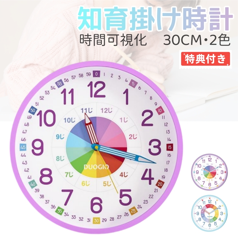 DUOGIO カラーで分かりやすい 知育時計 置き掛け両用時計 12寸 12インチ スタンド付き Time リビング学習 壁掛け時計 おしゃれ クロック プレゼント 置時計