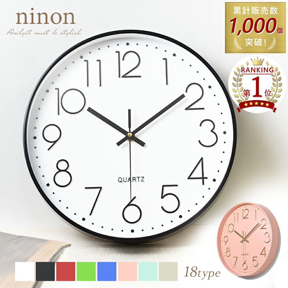 時計 壁掛け 見やすい ベーシック クロック 壁掛け時計 シンプル モノトーン 大人 インテリア おうち時間 掛け時計 電池 丸型 アナログ 大きめ ブラック 黒 白 壁 パステル おしゃれ シルバ