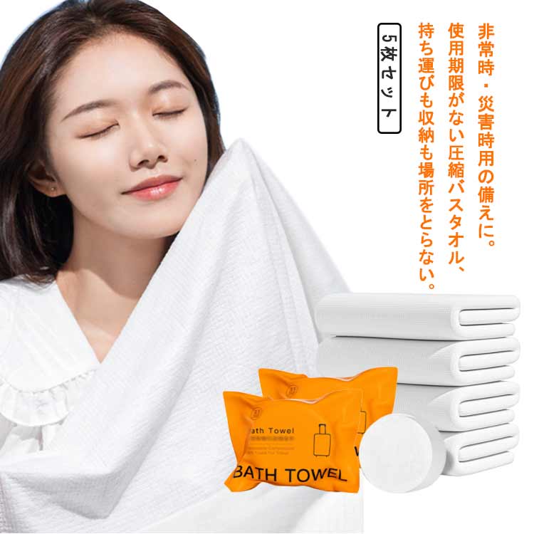 圧縮バスタオル 災害 吸水性に優れ 防災 場所を取らずに持ち運びに便利 旅行 防災グッズ 個包装で衛生的 抗菌 防災 圧縮バスタオル 5枚セット