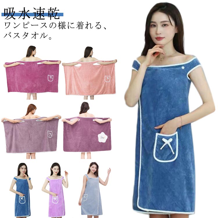 レディース ルームウェア 着るバスタオル サイズ バスタオル プール ラップタオル 吸水 タオル 薄手 湯上がりワンピース 海 ジム 旅行 大判 可愛い リボン 無地 大人 マイクロファイバー 大きい