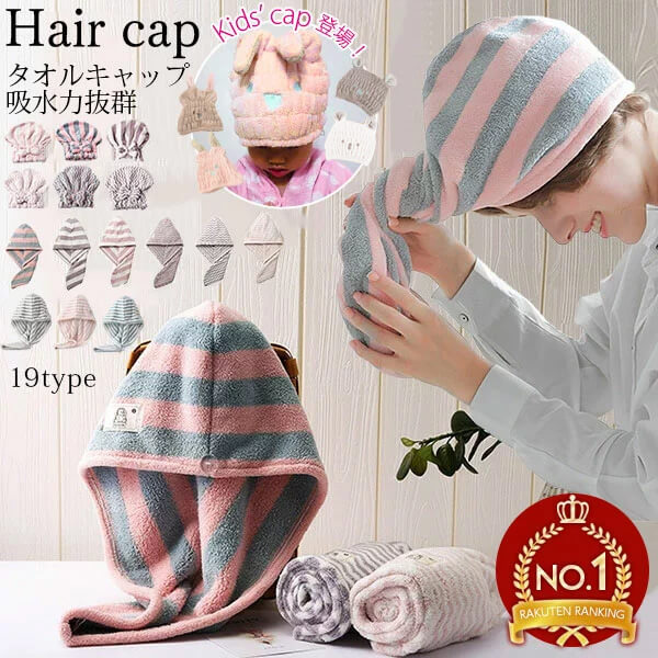 1B3 マイクロファイバーヘアキャップ タオルキャップ 吸水力抜群 マイクロファイバー 吸水 速乾 ヘアードライ 吸水タオルストライプ 波型タオル 時短 ながら時間 ヘア キャップ