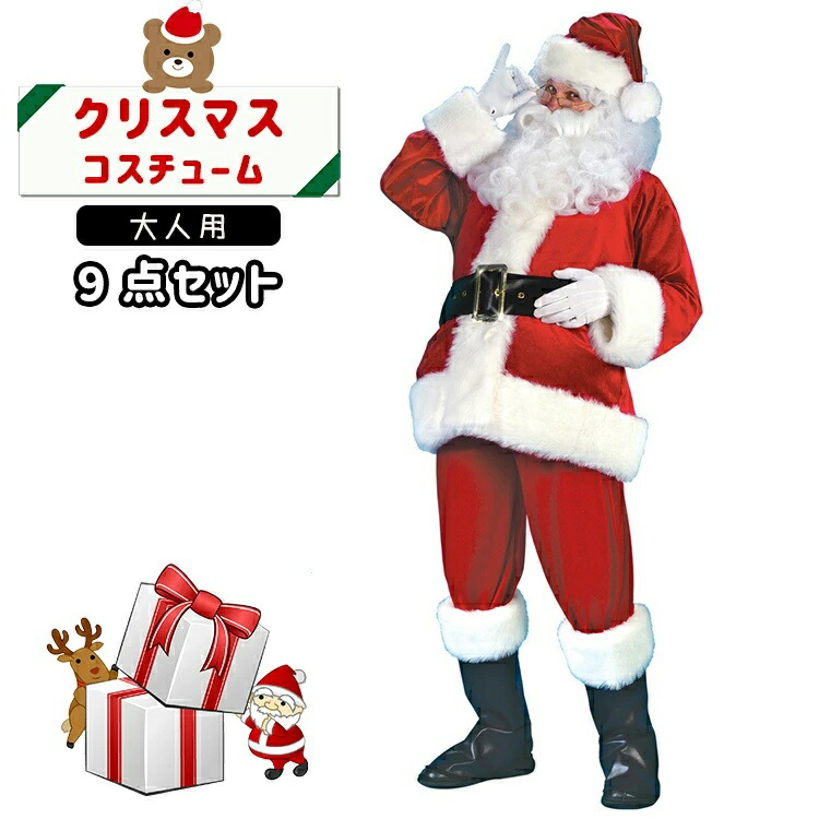 サンタクロース コスプレ 9点セット 大人用 クリスマス衣装 メンズサンタクロース サンタ帽子 サンタウィッグ メンズ サンタ コスチューム サンタコスプレ衣装 クリスマス コスチューム 仮装グッズ