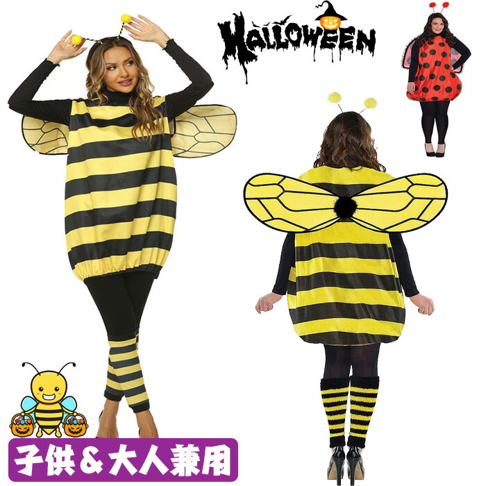 ハロウィンコスチューム コスプレ仮装3点セット 蜂の衣装 てんとう虫 蜂の衣装 ミツバチ子供大人男女兼用 文化祭演出服 学園祭 面白い