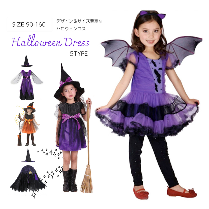 ハロウィン衣装 子供 コスプレ 衣装 子供 女の子 悪魔 魔女 小悪魔 仮装 衣装 コスプレコスチューム 子供用 パープル 紫色 コウモリ 子供用 女の子 キッズ ハロウインクロース 子供 ハロウイン