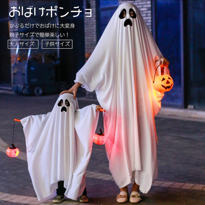 おばけポンチョ 親子ポンチョオバケ おばけ ポンチョ ハロウィン衣装 子供 仮装 男の子 お面付き 女の子 コスチューム
