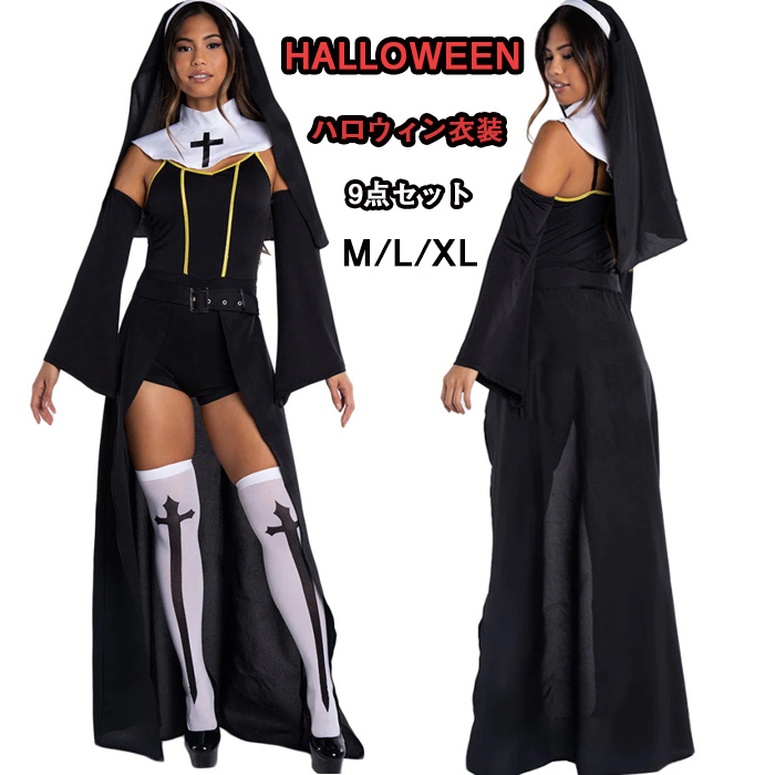 ハロウィン衣装 ハロウィン セットアップ 服装 セクシー 習慣修道女の衣装 宗教姉妹 ファンシードレス 大人 ファンタジア修道女の衣装 仮装 変装 イベント パーティー 文化祭