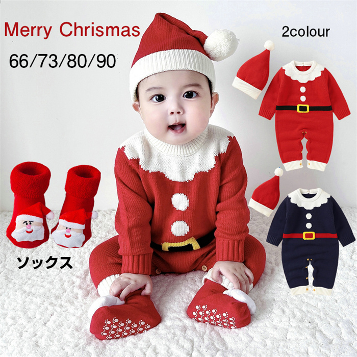クリスマス ベビー服 新生児 カバーオール 着ぐるみ ニットセーター 赤ちゃん サンタクロース ロンパース ニット帽子付き 幼児 子供 長袖 保育園 ジャンプスーツ 男の子 女の子