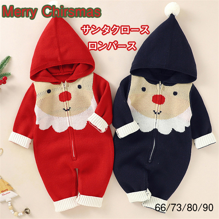 ベビー ニットロンパース サンタクロース サンタ服 ベビー服 サロベット 新生児 赤ちゃん クリスマス コスチューム 着ぐるみ サンタコスチューム 子供服