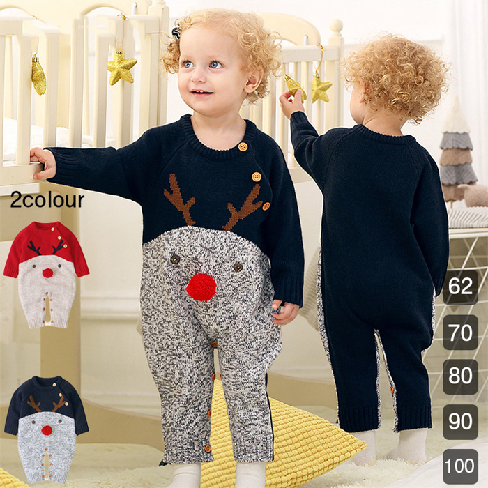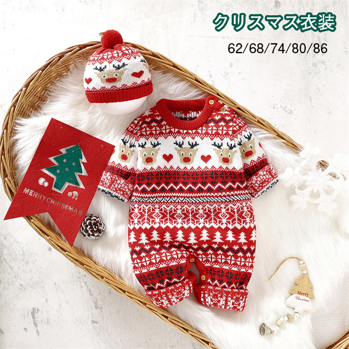 クリスマス ベビー服 新生児 カバーオール 着ぐるみ ニットセーター 赤ちゃん ロンパース ニット帽子付き 幼児 子供 長袖 保育園 ジャンプスーツ 出産祝い 男の子 女の子 百日祝い
