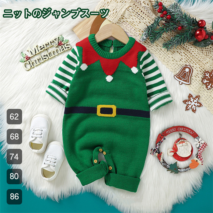 クリスマス ニットのジャンプスーツ 赤ちゃん用 男の子 女の子用 新品 ロンパース ベービー衣装 セーター かわいい コスプレ衣装 グリーン