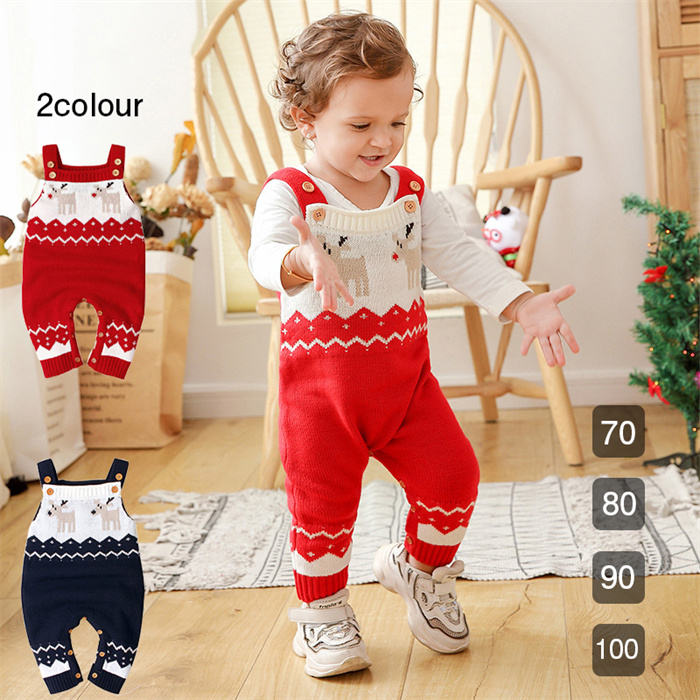新生児服 男の子 鹿 ロンパース 暖かいニット 鹿柄 長袖 クリスマススーツ オールインワン 子供用のニットウェア 赤 レッド ダークブルー
