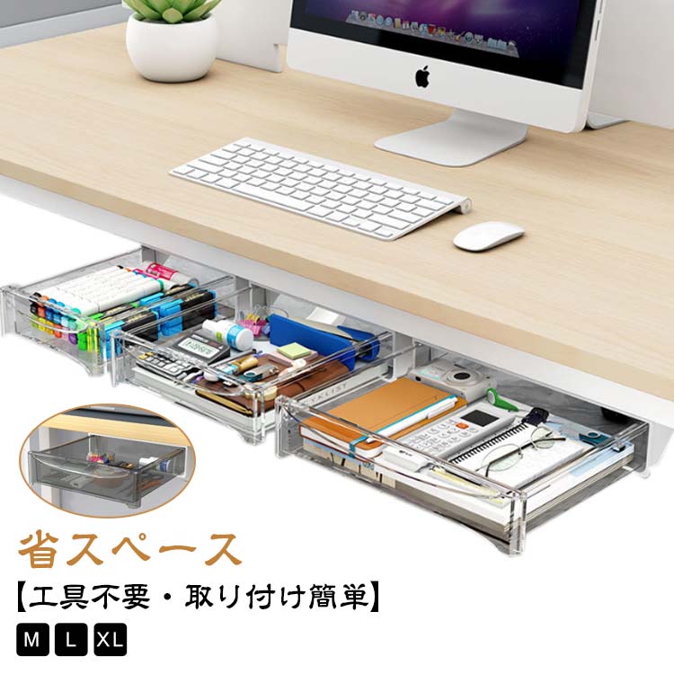 机下収納 机 後付け引き出し 机 取り付け テーブル下 収納 テーブル下 スライド 小物収納 文房具収納 台 後付け テーブル デスク 穴あけ不要