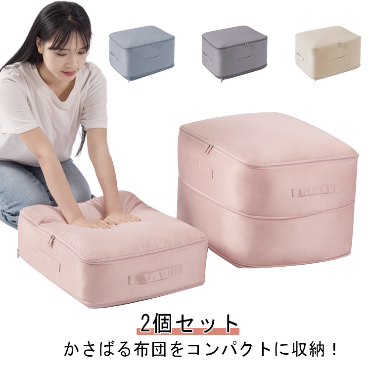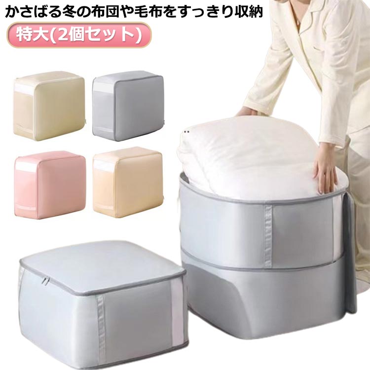 布団収納ケース 2個セット 羽毛布団ケース サテン 布団圧縮袋 収納袋 収納ケース 押入れ収納 保管 片付け 寝具 ふとん 布団入れ 衣替え 布団 毛布 タオルケット 寝具収納 ファスナー 取っ手 持