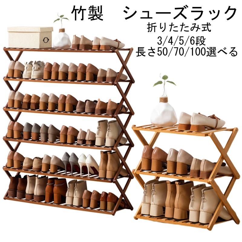 折り畳み式 3 4 5 6段 長50 70 100 シューズラック 竹製ラック ウッドラック 多機能 インテリア アウトドア レジャー 庭 ガーデニング シューズラック 収納 玄関 コンパクト 下