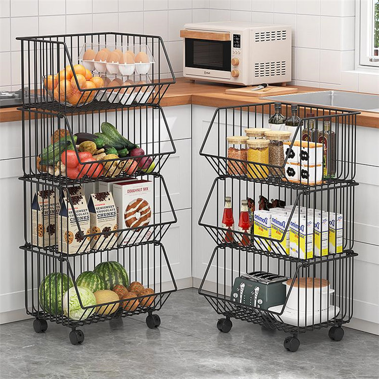 ブラック ゴールド ホワイトバスケットワゴン キャスター付き 多機能 収納カゴ 収納ラック 調整可能 スタッキング式 収納バスケット バスルームワゴンカート スペースラック キッチンワゴン 収納カート
