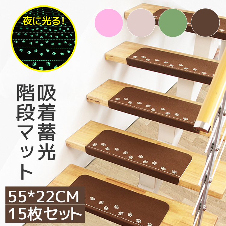 階段マット 55×22 15枚セット 1枚440円 滑り止めマット 吸着蓄光 丸洗い 洗える キズ防止 防音対策 足冷え 廊下敷き カーペット おしゃれ かわいい -020