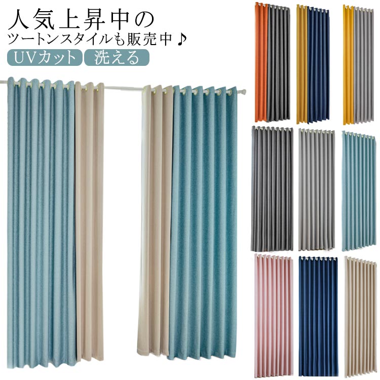 全10色×2タイプ 遮光カーテン 一級遮光カーテン 綿麻風 北欧 カーテン ツートンカラー ワンカラー リビング