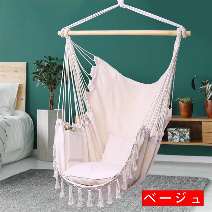 ハンモックチェア 吊り下げ式 ハンギングチェア クッション付き コットン ガーデンチェア スイングチェア 椅子 吊り椅子 大人&子供兼用 屋内 屋外用 中庭 ポーチ ガーデン 寝室 裏庭 キャンプ ロ