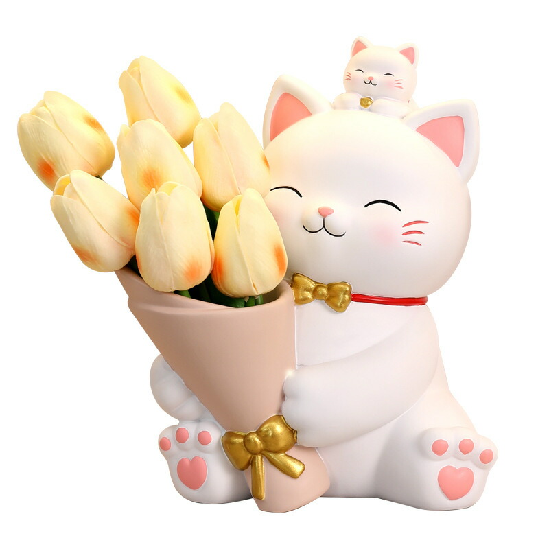 置き物 猫ちゃん 花動物像 彫刻装飾 樹脂製品 インテリア おしゃれ 動物 フィギュア フラワーギフト 花束 置物 オブジェ 誕生日 プレゼント 贈り物 ギフト 開店祝い お見舞い 結婚祝い 退職祝い