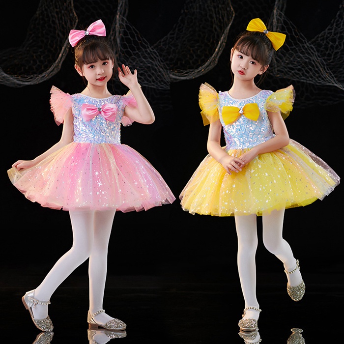 2021 新作 新品登場 可愛い 女の子 ダンス衣装 ワンピース 舞台服 ブルー イエロー パープル ローズ 90-160