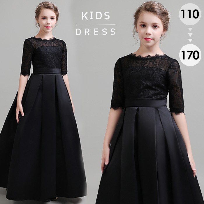 ピアノ発表会 ドレス 子供 女の子 発表会 ドレス 子ども レース ワンピース ブラック 黒 半袖 お祝い日