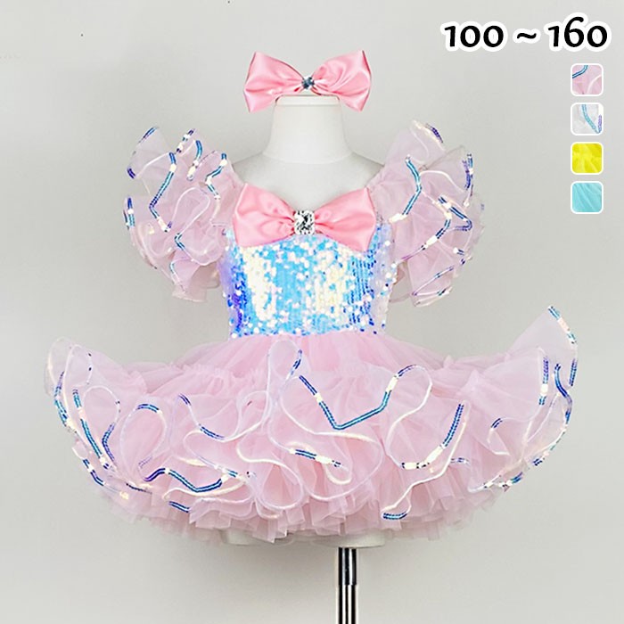 2024 新作 新品登場 可愛い 女の子 ダンス衣装 舞台服 ワンピース ヘアアクセサリー2点セット 100-160cm
