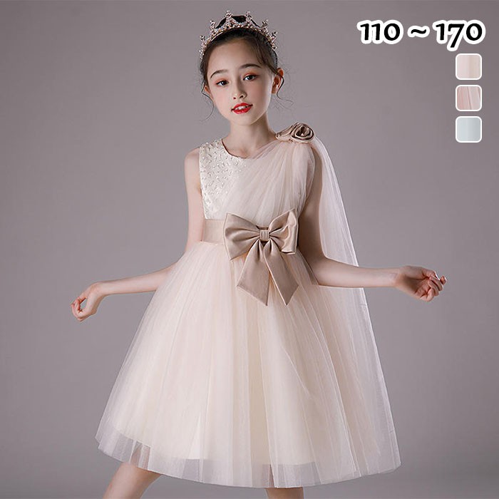 キッズ ドレス ピアノ発表会 女の子 ワンピース ノースリーブ フラワーガール ベールガール リボン付き 中学生 子供 パーティードレス