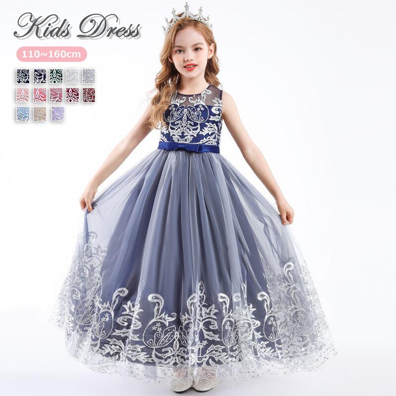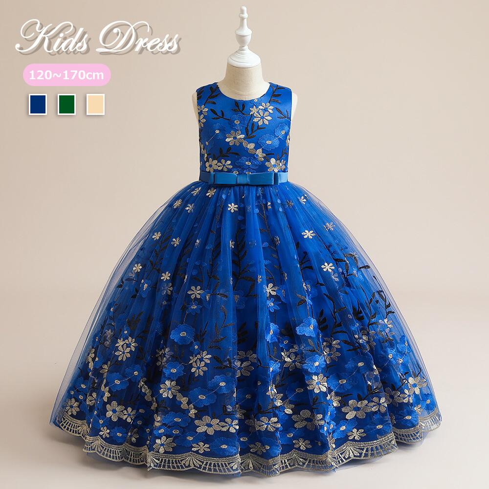 子供ドレス ベビー 結婚式 キッズ フォーマルドレス 子どもドレス ジュニアドレス 結婚式 女の子 キッズワンピース 赤ちゃん 子供服 ブルー バースデイ 人気 ギフト お姫様 刺繍 記念日